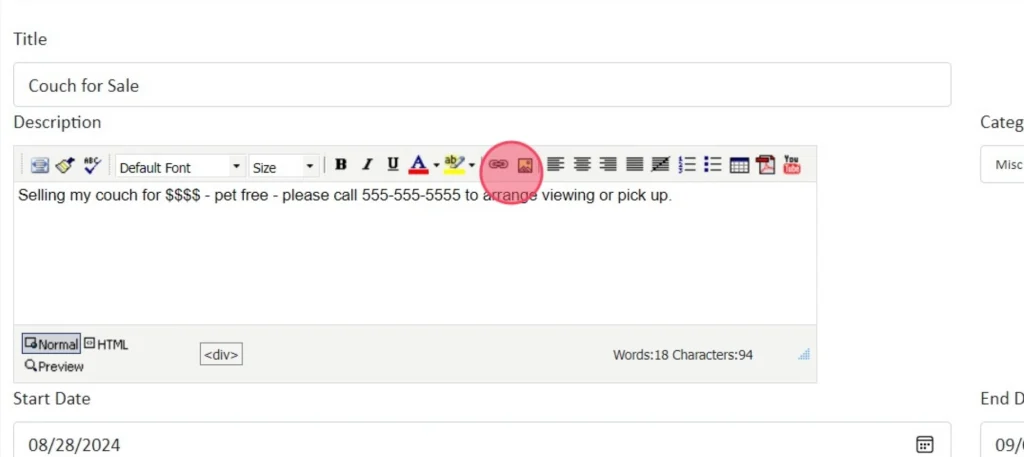 This guide reviews how to post a classified ad and how to embed photos into the description for a better display.