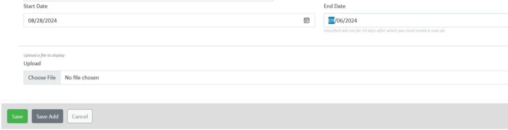 The ad will archive itself and no longer display after 10 days, unless the user updates the date field.